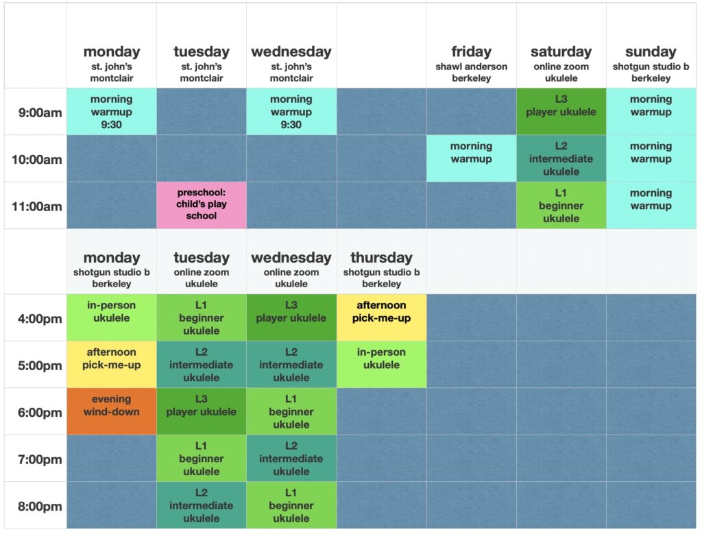 I LOVE your in-person classes and I’m thrilled that you’re bringing them back into being. Hopefully, folks will be moved to take them in these post-pandemic days. I got so much out of them and still use the lessons of music’s physicality to better impress my ukulele dabblings into my brain! I’m not someone who is natively musical, so this helped me get there.